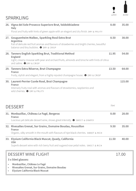 See Menu and Wine List below...