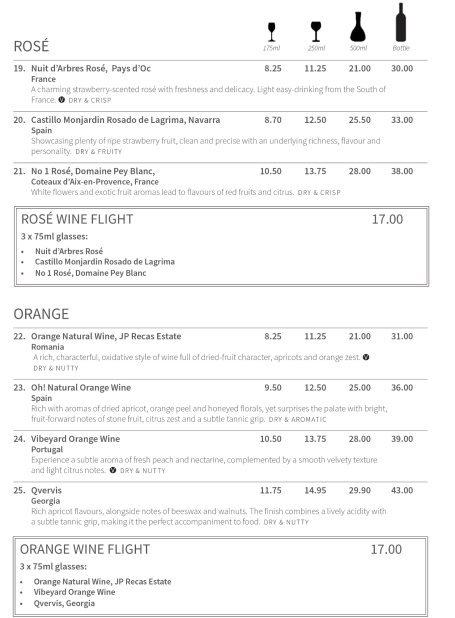 Discover our extensive range of unique, high-quality wines sourced from renowned vineyards from across the world. Compare and contrast a range of wines through our unique flights experience which allows you to explore the full spectrum of red, white, rose, orange, and dessert wines from around the world. Enrich your palette!