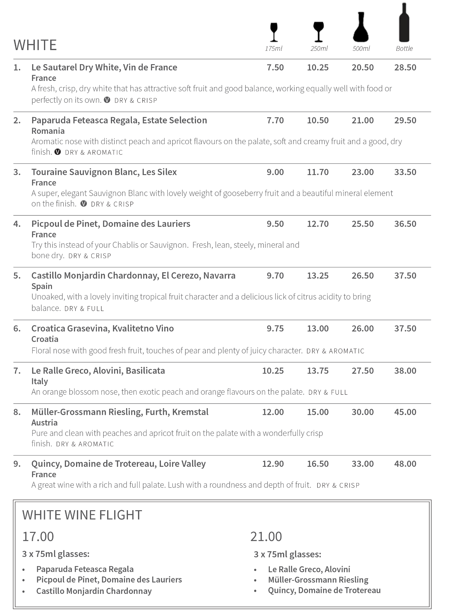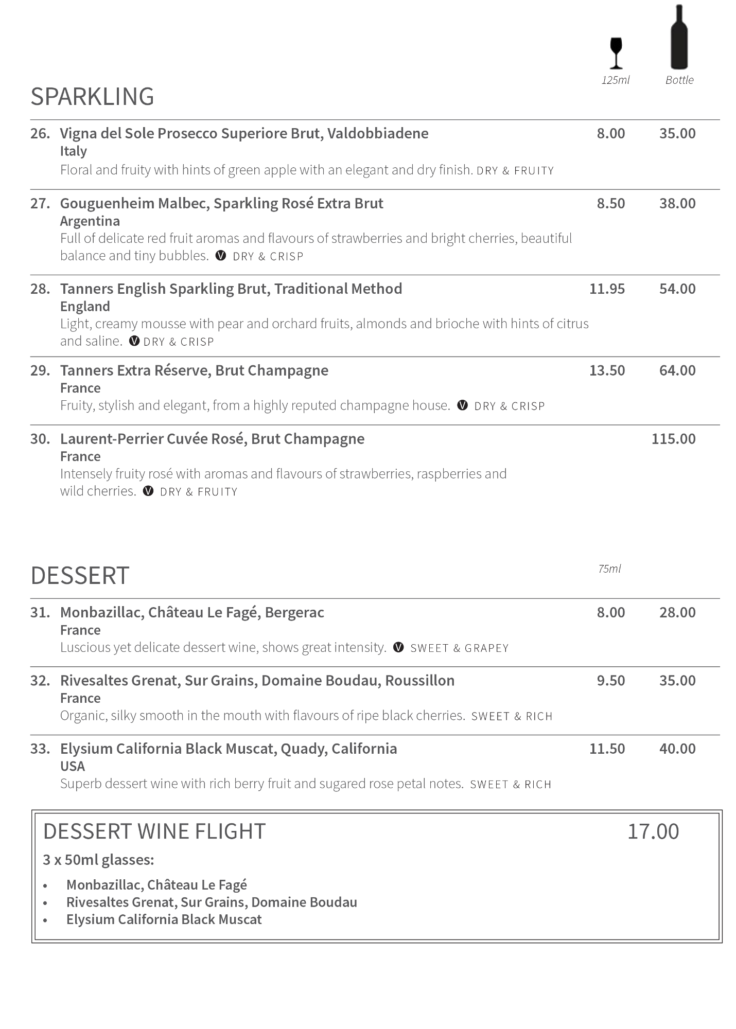 Menu and Wine List