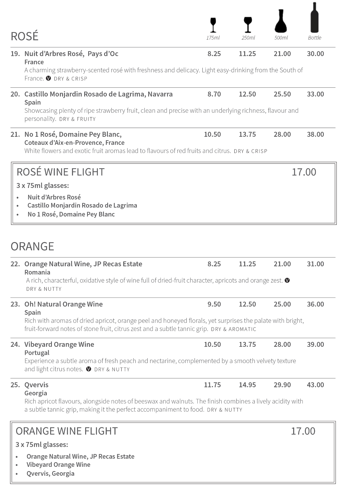Discover our extensive range of unique, high-quality wines sourced from renowned vineyards from across the world. Compare and contrast a range of wines through our unique flights experience which allows you to explore the full spectrum of red, white, rose, orange, and dessert wines from around the world. Enrich your palette!
