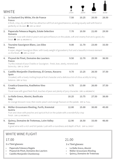 See Menu and Wine List below...